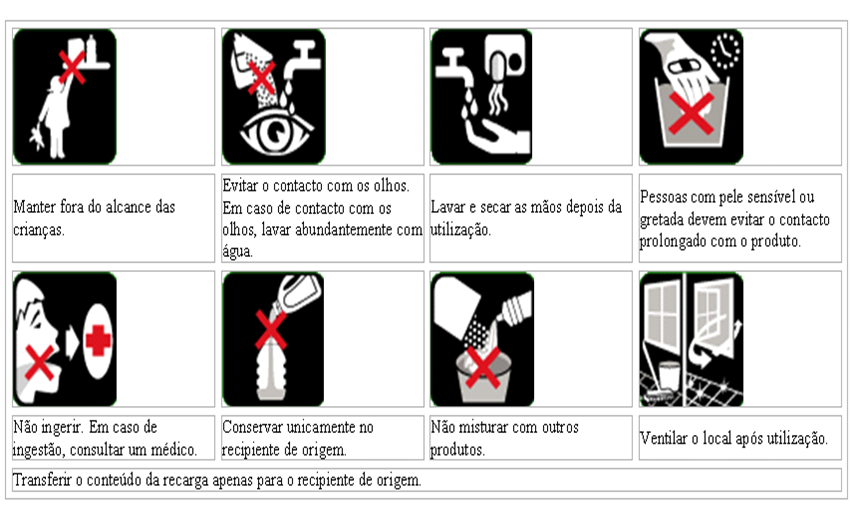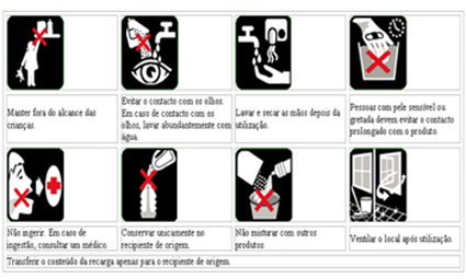 Já é prática normal os rótulos dos detergentes conterem instruções/símbolos que contribuem para uma utilização segura quando se manuseia o produto. É importante que estas instruções sejam lidas cuidadosamente.